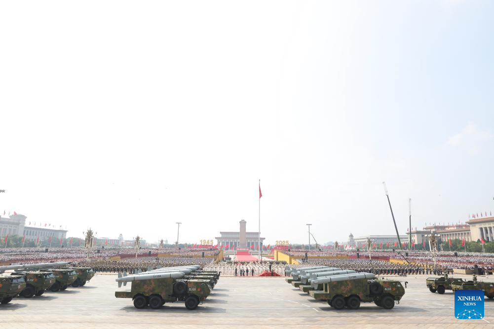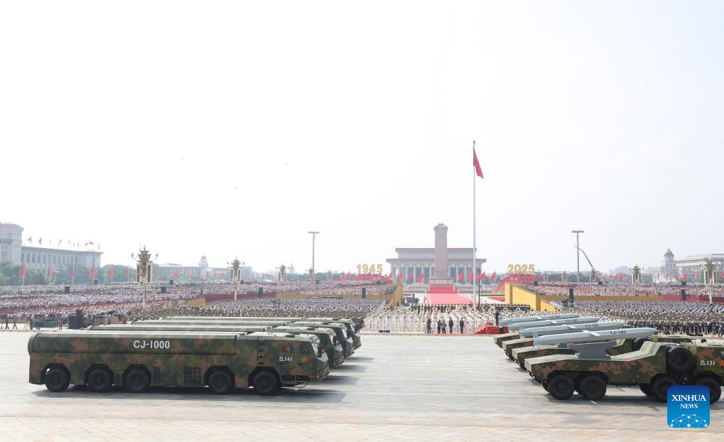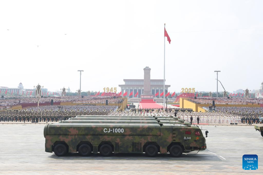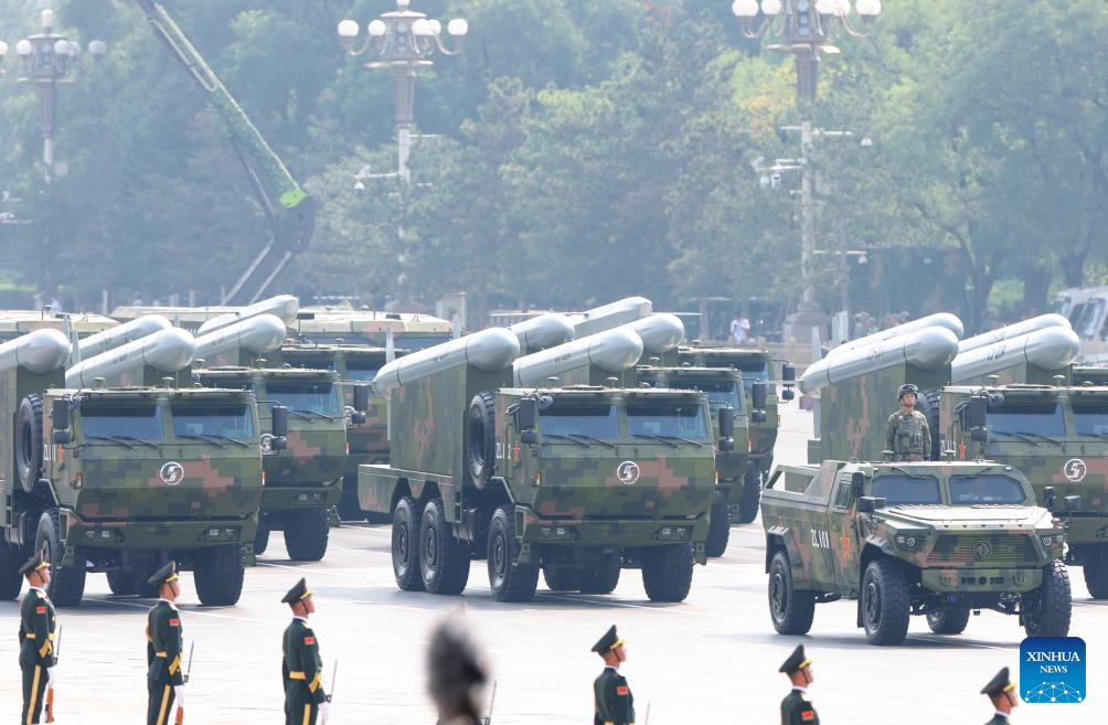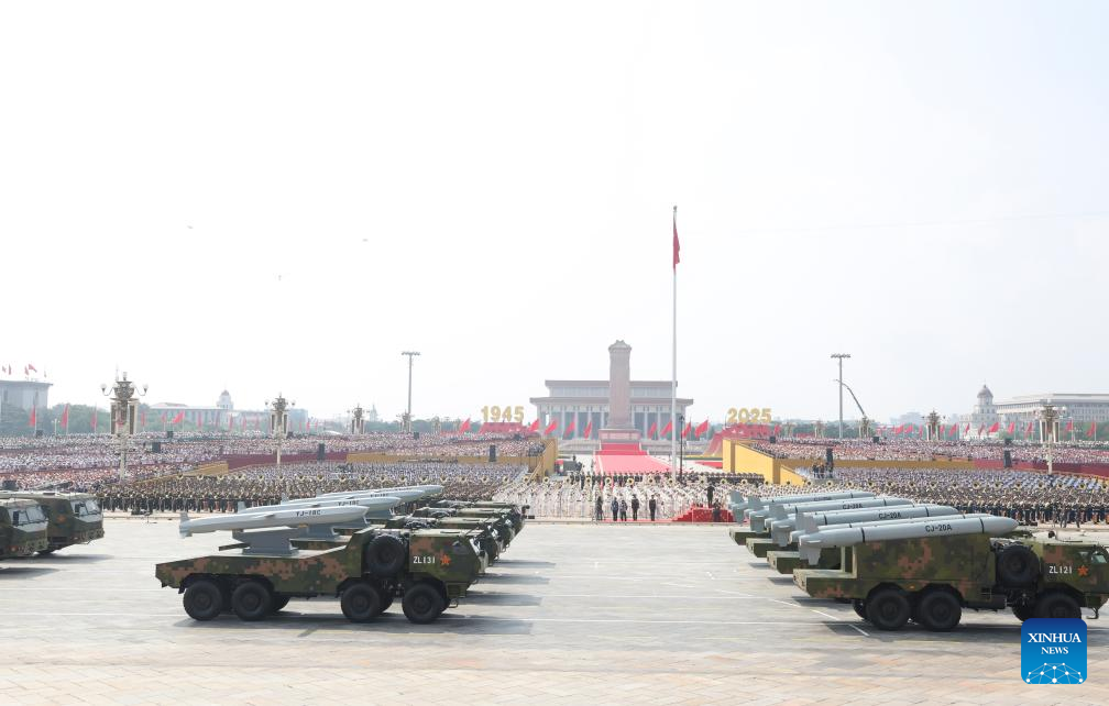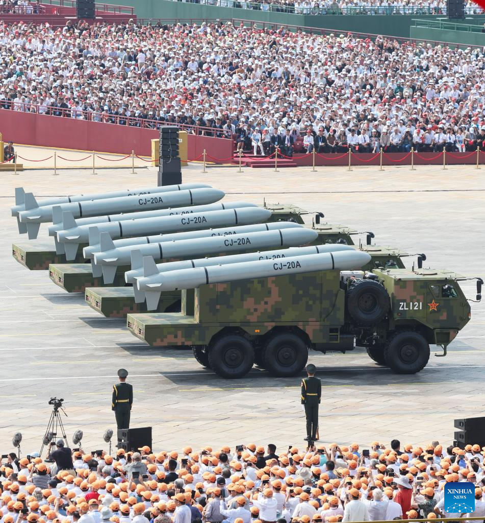 Beijing, 3 set (Xinhua) -- A China revelou os mísseis de cruzeiro ChangJian-20A, YingJi-18C e ChangJian-1000 no desfile militar do Dia da Vitória, nesta quarta-feira, para mostrar suas capacidades de ataque com precisão de longo alcance e dissuasão multidomínio.