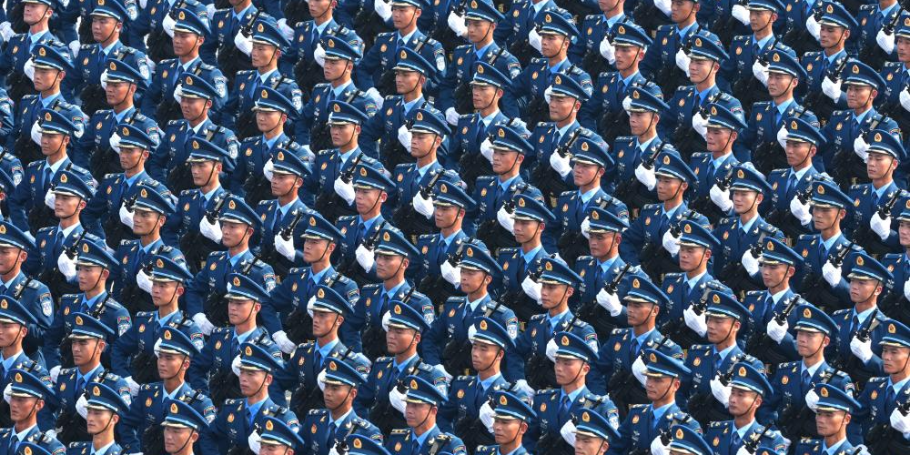 Formação da Força Aérea do ELP marcha pela Praça Tian'anmen