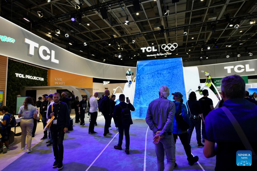 Área de exposição da TCL na IFA Berlin 2025, em Berlim, Alemanha, em 5 de setembro de 2025. A IFA Berlin 2025, uma das maiores feiras de eletrônicos de consumo e eletrodomésticos do mundo, foi inaugurada na sexta-feira, destacando temas voltados para o futuro, como tecnologia da informação, inteligência artificial, software e poder de computação, além de soluções sustentáveis para residências, mobilidade e estilo de vida. (Xinhua/Zhang Haofu)