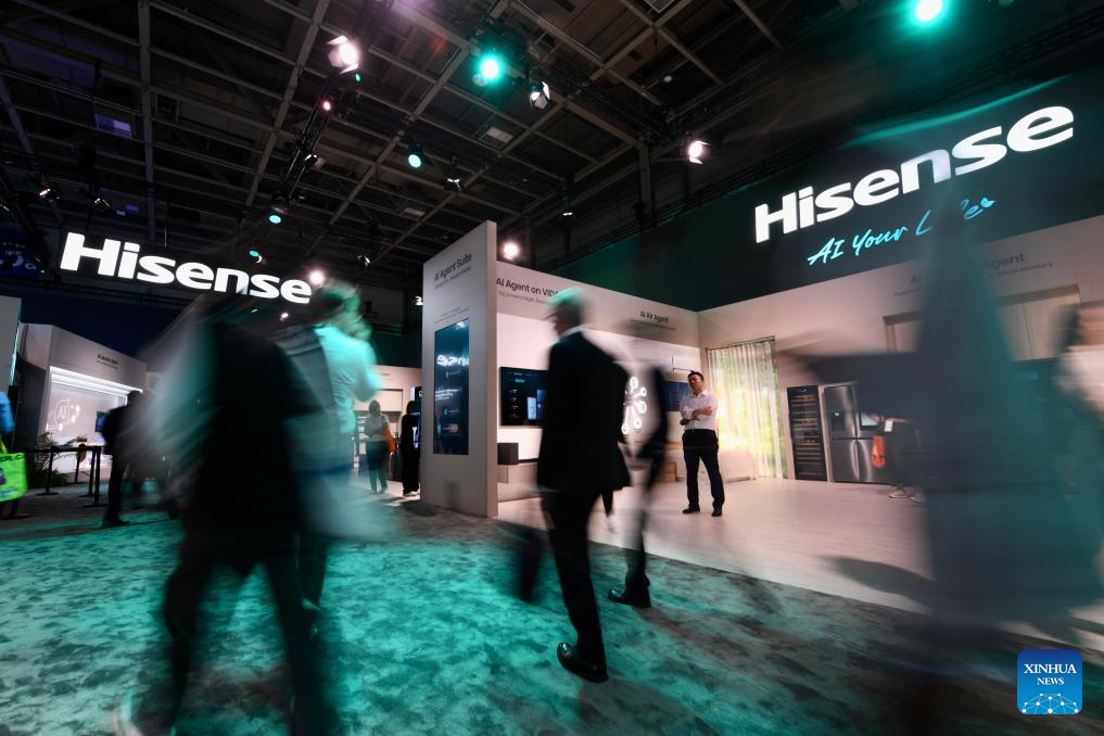 Área de exposição da Hisense na IFA Berlin 2025, em Berlim, Alemanha, em 5 de setembro de 2025. A IFA Berlin 2025, uma das maiores feiras de eletrônicos de consumo e eletrodomésticos do mundo, foi inaugurada na sexta-feira, destacando temas voltados para o futuro, como tecnologia da informação, inteligência artificial, software e poder de computação, além de soluções sustentáveis para residências, mobilidade e estilo de vida. (Xinhua/Zhang Haofu)