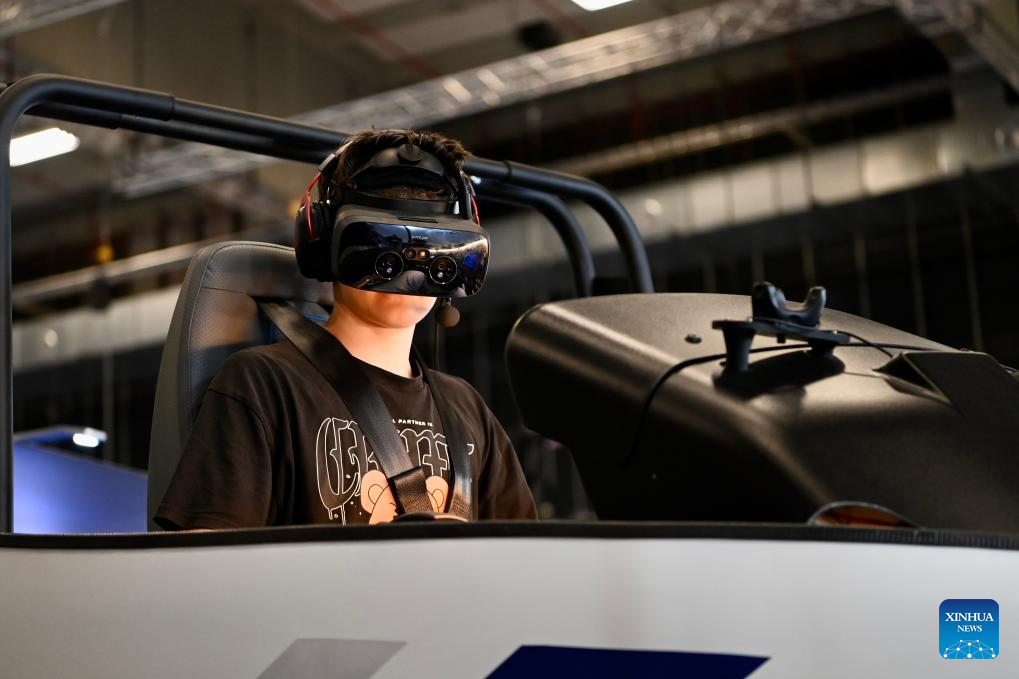 Visitante testa equipamento de simulação de voo na IFA Berlin 2025, em Berlim, Alemanha, em 5 de setembro de 2025. A IFA Berlin 2025, uma das maiores feiras de eletrônicos de consumo e eletrodomésticos do mundo, foi inaugurada na sexta-feira, destacando temas voltados para o futuro, como tecnologia da informação, inteligência artificial, software e poder de computação, além de soluções sustentáveis para residências, mobilidade e estilo de vida. (Xinhua/Zhang Haofu)