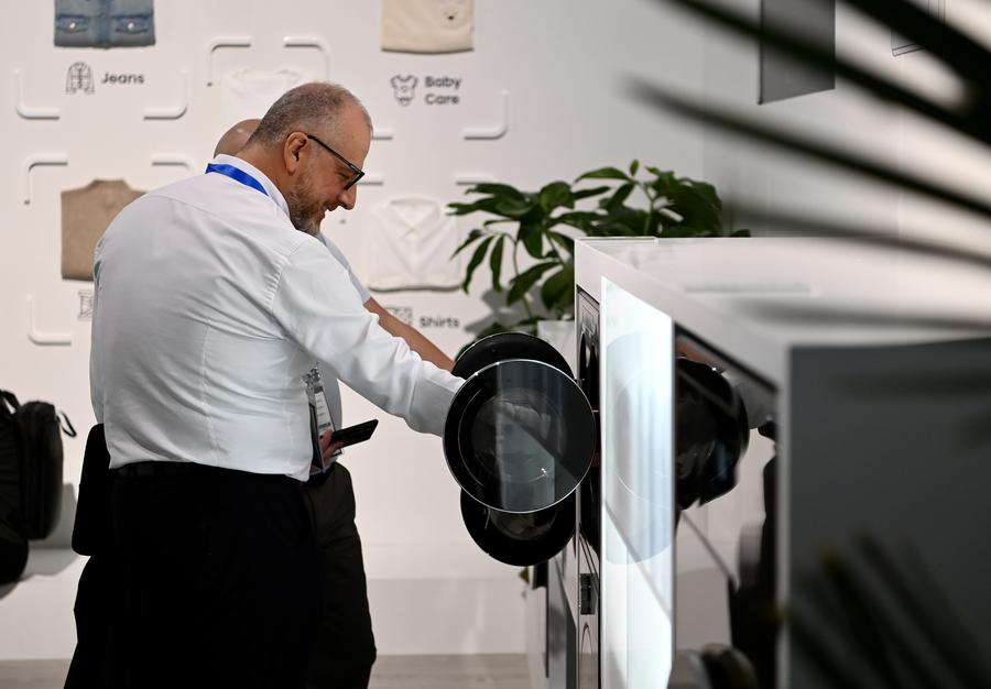 Pessoas olham máquinas de lavar na área de exposição da Hisense na IFA Berlim 2025, em Berlim, Alemanha, em 5 de setembro de 2025. A IFA Berlim 2025, uma das maiores feiras de eletrônicos de consumo e eletrodomésticos do mundo, foi inaugurada na sexta-feira, destacando temas voltados para o futuro, como tecnologia da informação, inteligência artificial, software e poder computacional, além de soluções sustentáveis para residências, mobilidade e estilo de vida. (Xinhua/Zhang Haofu)