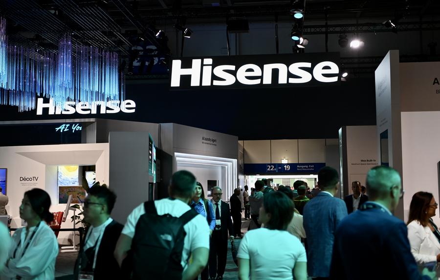 Pessoas visitam área de exposição da Hisense na IFA Berlim 2025, em Berlim, Alemanha, em 5 de setembro de 2025. A IFA Berlim 2025, uma das maiores feiras de eletrônicos de consumo e eletrodomésticos do mundo, foi inaugurada na sexta-feira, destacando temas voltados para o futuro, como tecnologia da informação, inteligência artificial, software e poder computacional, além de soluções sustentáveis para residências, mobilidade e estilo de vida. (Xinhua/Zhang Haofu)