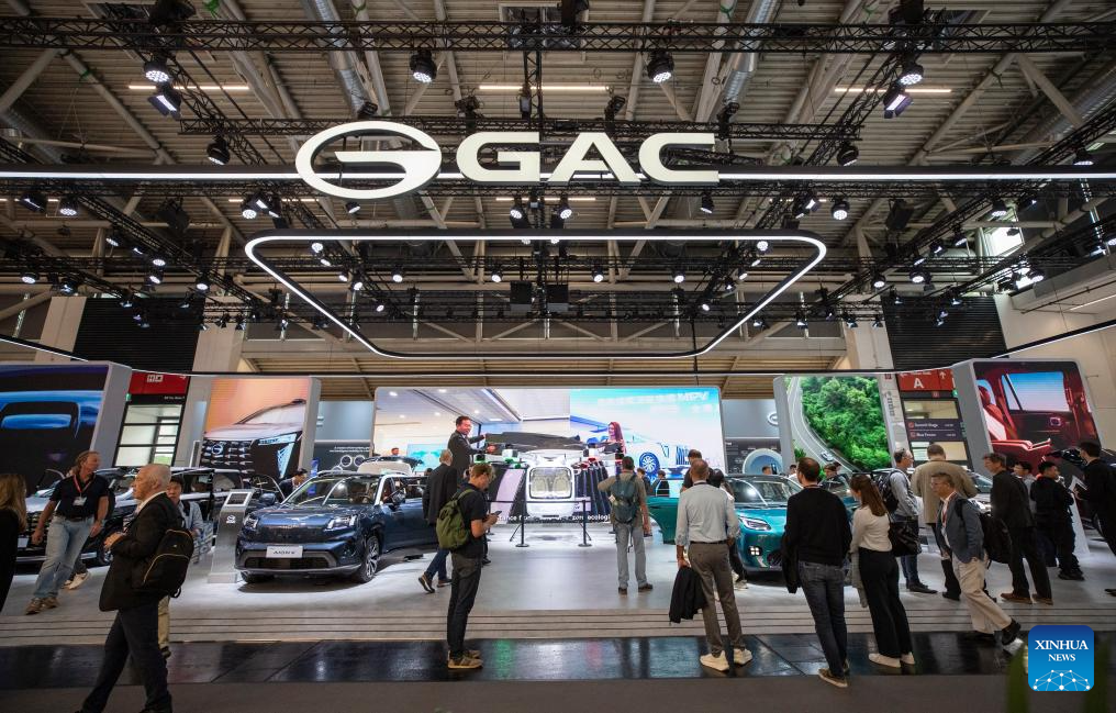 Pessoas visitam a área de exposição da GAC na IAA Mobility 2025 em Munique, Alemanha, em 10 de setembro de 2025. A IAA Mobility 2025, uma das maiores feiras de mobilidade do mundo, começou na terça-feira, com montadoras e fornecedores globais apresentando veículos elétricos (EVs), direção autônoma e inovações baseadas em software. A China se destaca como a maior fonte de expositores estrangeiros, disseram os organizadores, com 116 empresas, incluindo as fabricantes de EVs BYD, Xpeng e Leapmotor, a gigante de baterias CATL e empresas de tecnologia como Zhuoyu e DeepRoute.ai. (Xinhua/Zhang Fan)