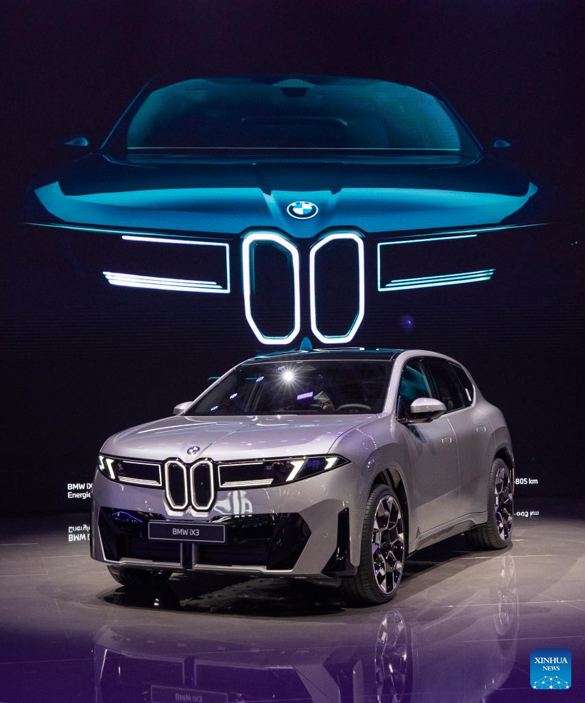 Foto tirada em 9 de setembro de 2025 mostra um BMW iX3 na IAA Mobility 2025 em Munique, Alemanha. A IAA Mobility 2025, uma das maiores feiras de mobilidade do mundo, começou na terça-feira, com montadoras e fornecedores globais apresentando veículos elétricos (EVs), direção autônoma e inovações baseadas em software. (Xinhua/Zhang Fan)