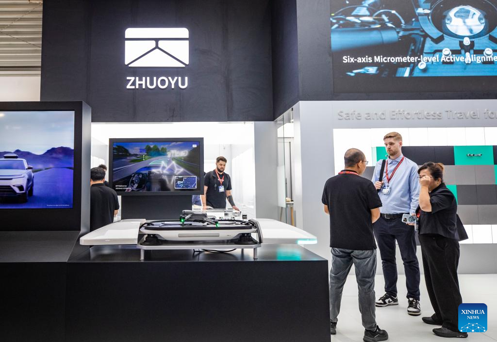 Pessoas visitam a área de exposição da Zhuoyu na IAA Mobility 2025 em Munique, Alemanha, em 10 de setembro de 2025. A IAA Mobility 2025, uma das maiores feiras de mobilidade do mundo, começou na terça-feira, com montadoras e fornecedores globais apresentando veículos elétricos (EVs), direção autônoma e inovações baseadas em software. A China se destaca como a maior fonte de expositores estrangeiros, disseram os organizadores, com 116 empresas, incluindo as fabricantes de EVs BYD, Xpeng e Leapmotor, a gigante de baterias CATL e empresas de tecnologia como Zhuoyu e DeepRoute.ai. (Xinhua/Zhang Fan)