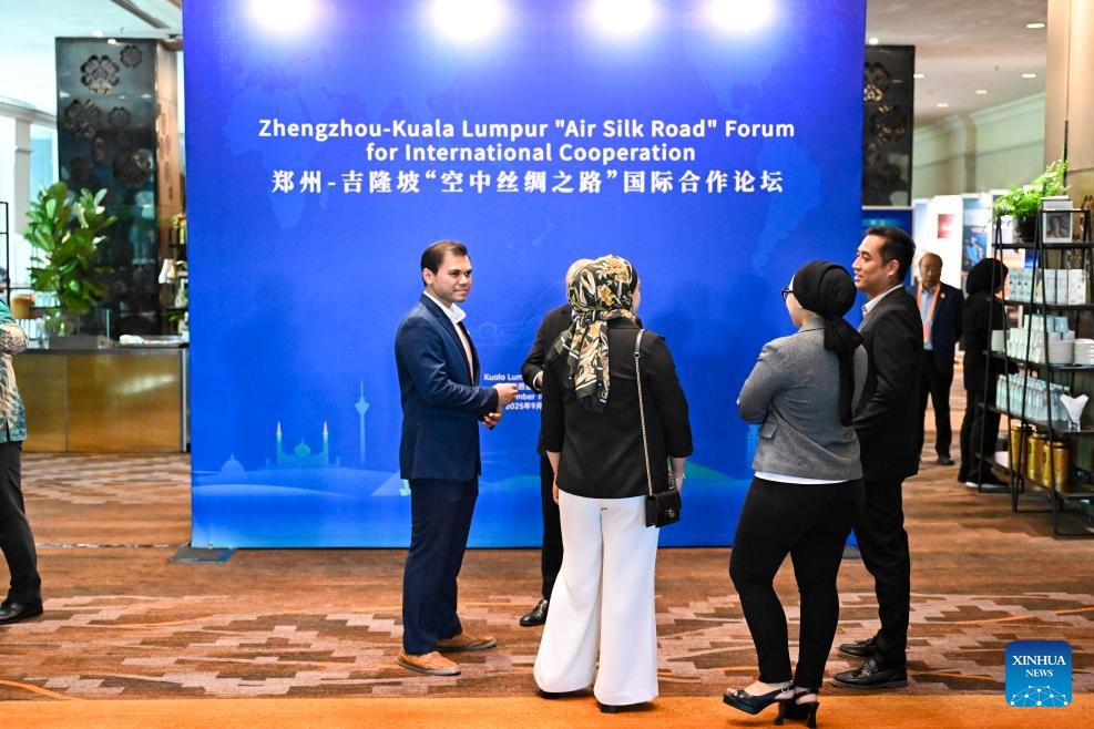 Convidados participam do Fórum "Rota Aérea da Seda" Zhengzhou-Kuala Lumpur para Cooperação Internacional em Kuala Lumpur, Malásia, em 18 de setembro de 2025. (Xinhua/Cheng Yiheng)