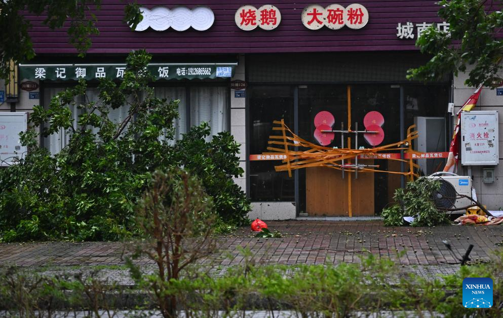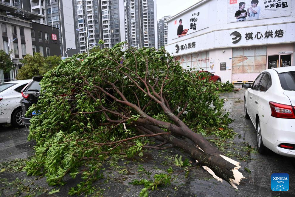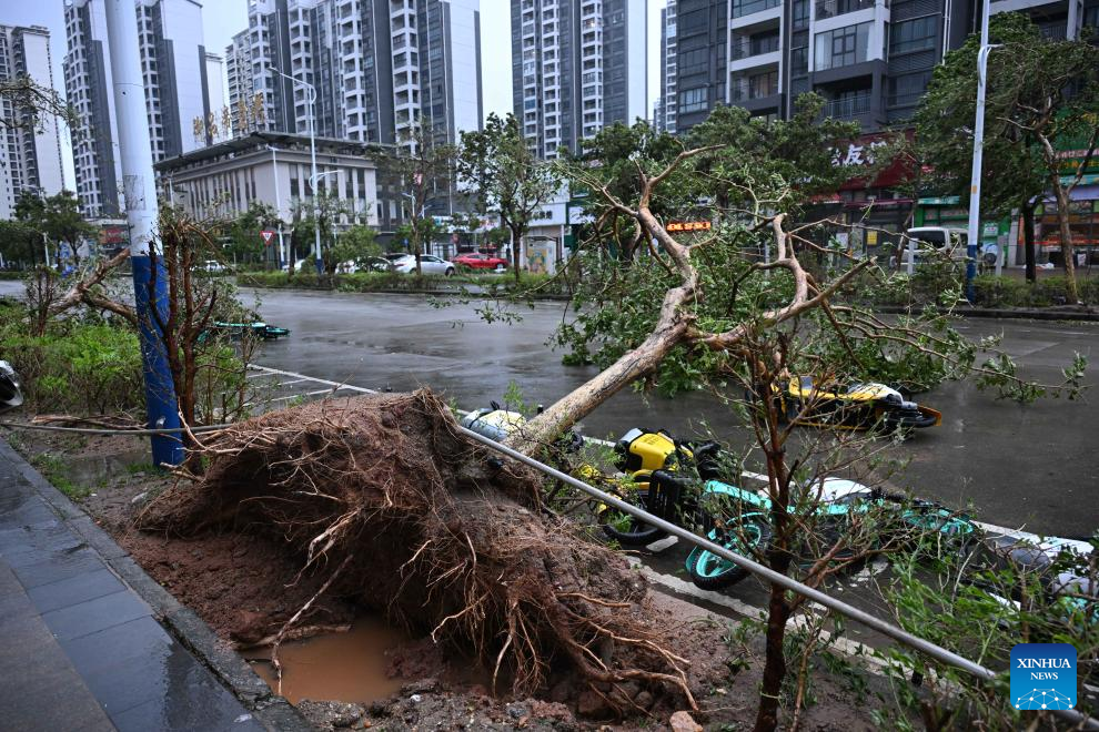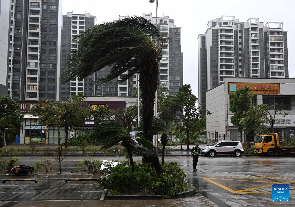 O tufão, com força máxima do vento perto de seu centro atingindo 40 metros por segundo, atingiu a costa na Ilha Hailing, na cidade de Yangjiang, em Guangdong.
