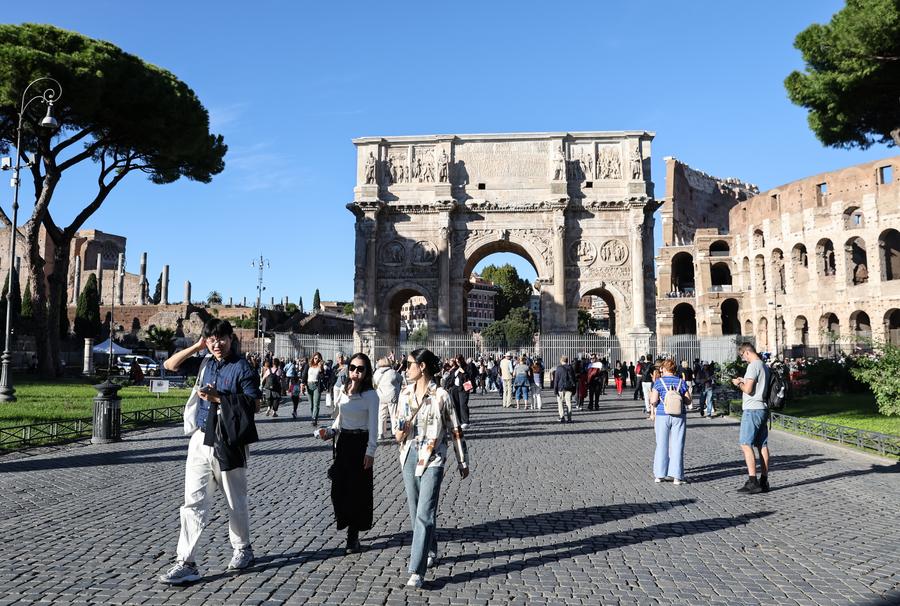 Turistas chineses visitam o centro de Roma, Itália, em 6 de outubro de 2025. (Xinhua/Li Jing)