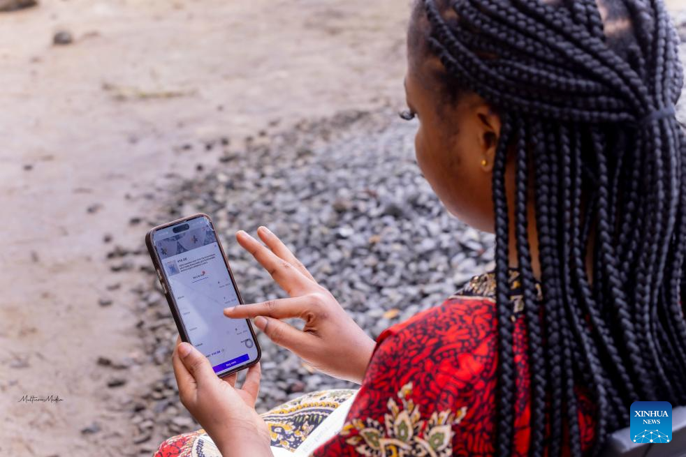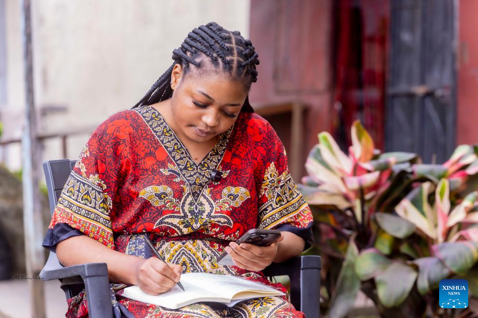 Elove Marie-Cleophas Messanga faz compras on-line e organiza entregas de uma empresa chinesa em seu celular em Buea, capital da Região Sudoeste, Camarões, em 20 de setembro de 2025. (Foto por Muleng Timngum/Xinhua)
