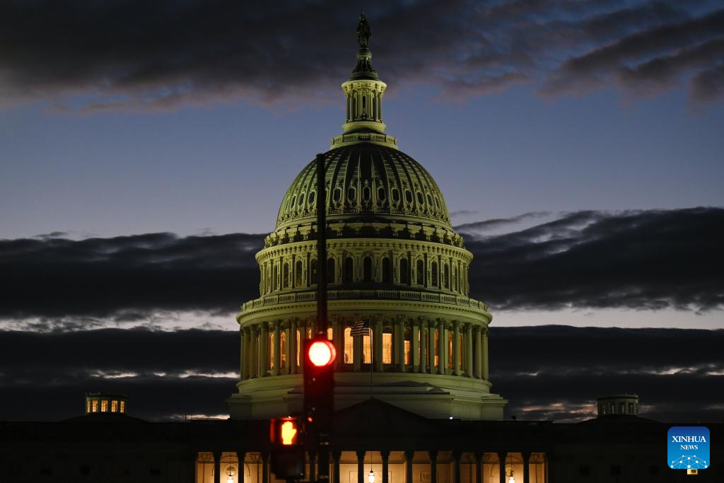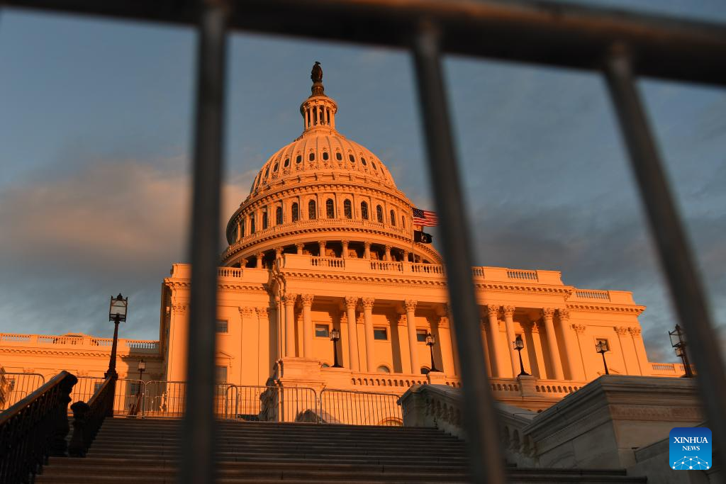 O Capitólio dos EUA ao pôr do sol em Washington, D.C., Estados Unidos, em 15 de outubro de 2025. (Xinhua/Li Rui)
