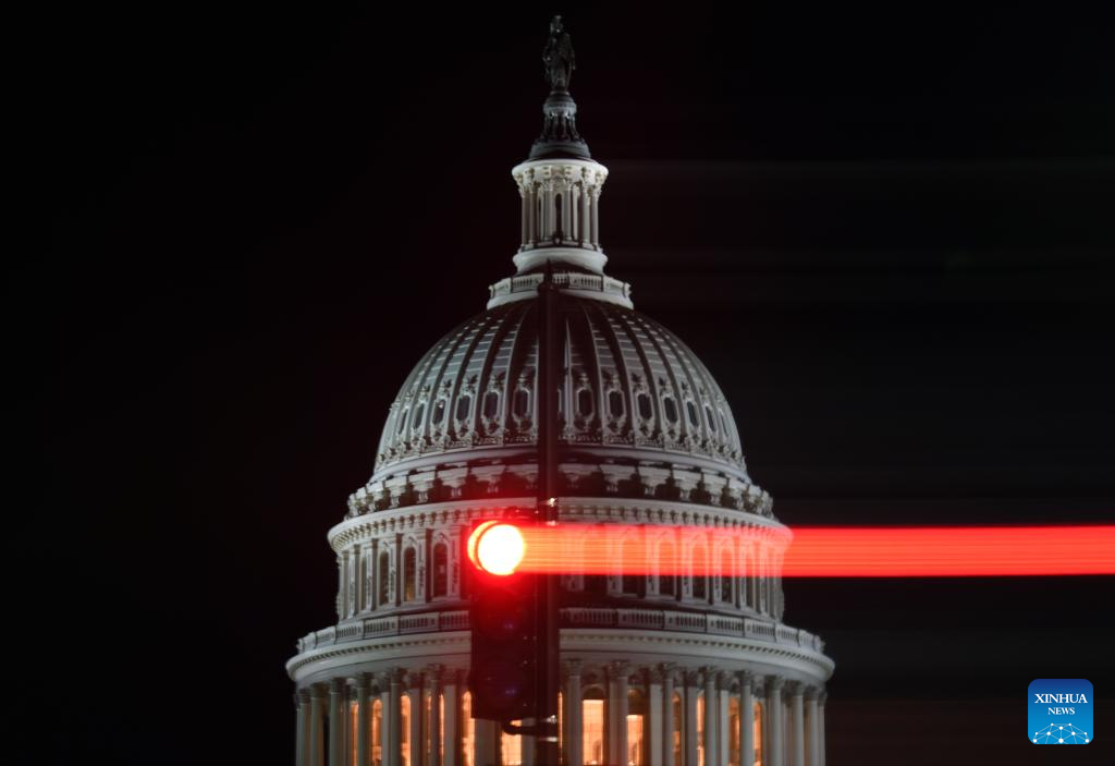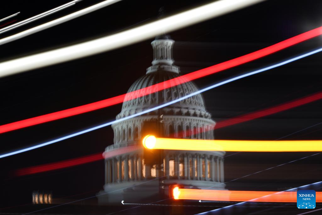 Foto de longa exposição tirada em 15 de outubro de 2025 mostra o Capitólio dos EUA em Washington, D.C., Estados Unidos. (Xinhua/Li Rui)