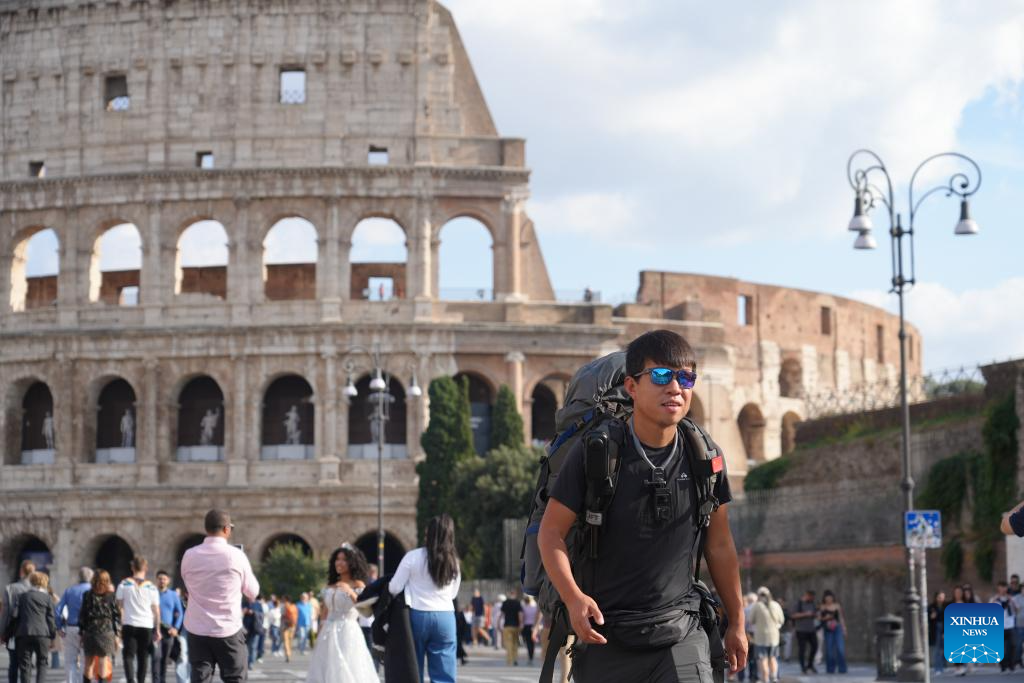 Roma, 24 out (Xinhua) -- Sob o sol de outono, Cheng Long, 34 anos, estava diante do Coliseu em Roma, Itália, com uma mochila desgastada aos seus pés. Usando uma simples camiseta azul, com a pele bronzeada e o cabelo despenteado pelo vento, ele parecia um verdadeiro viajante itinerante, e o ponto final de uma caminhada de dois anos que começou em Xi'an, na China, e percorreu os ecos modernos da antiga Rota da Seda através da Eurásia.