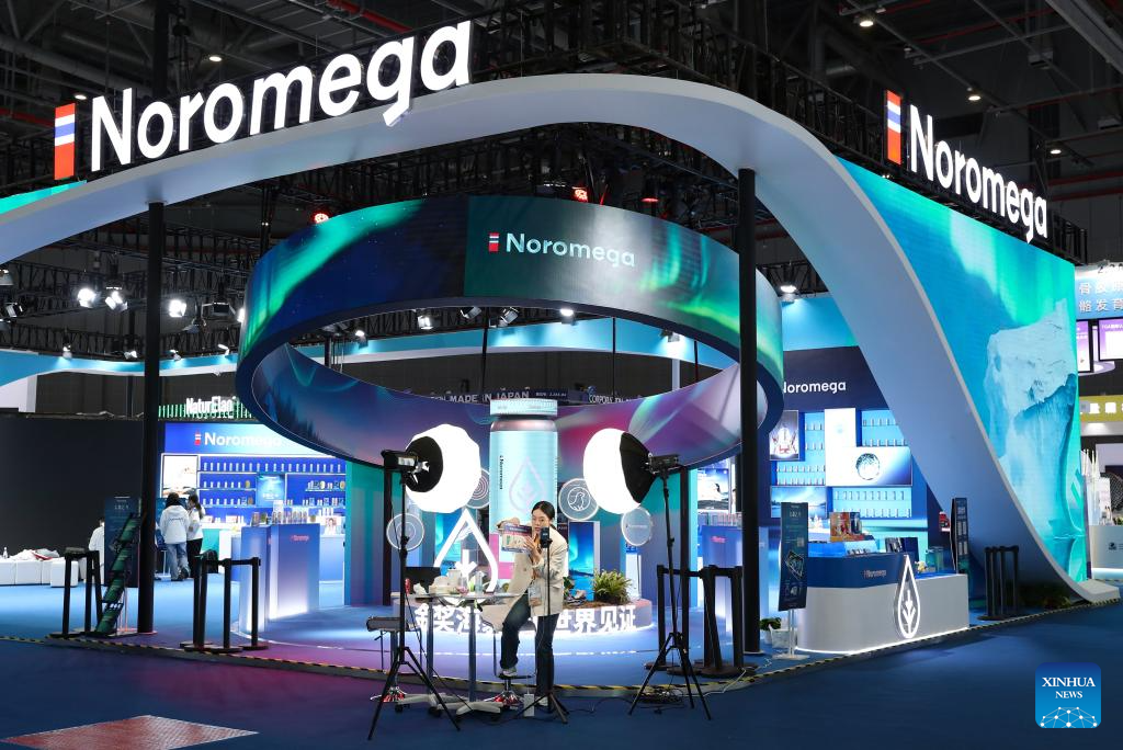 This photo taken on Nov. 4, 2025 shows a view of the Medical Equipment & Healthcare Products exhibition area of the eighth China International Import Expo (CIIE) in east China's Shanghai. The eighth CIIE will be held in Shanghai from Nov. 5 to 10. (Xinhua/Meng Chenguang)