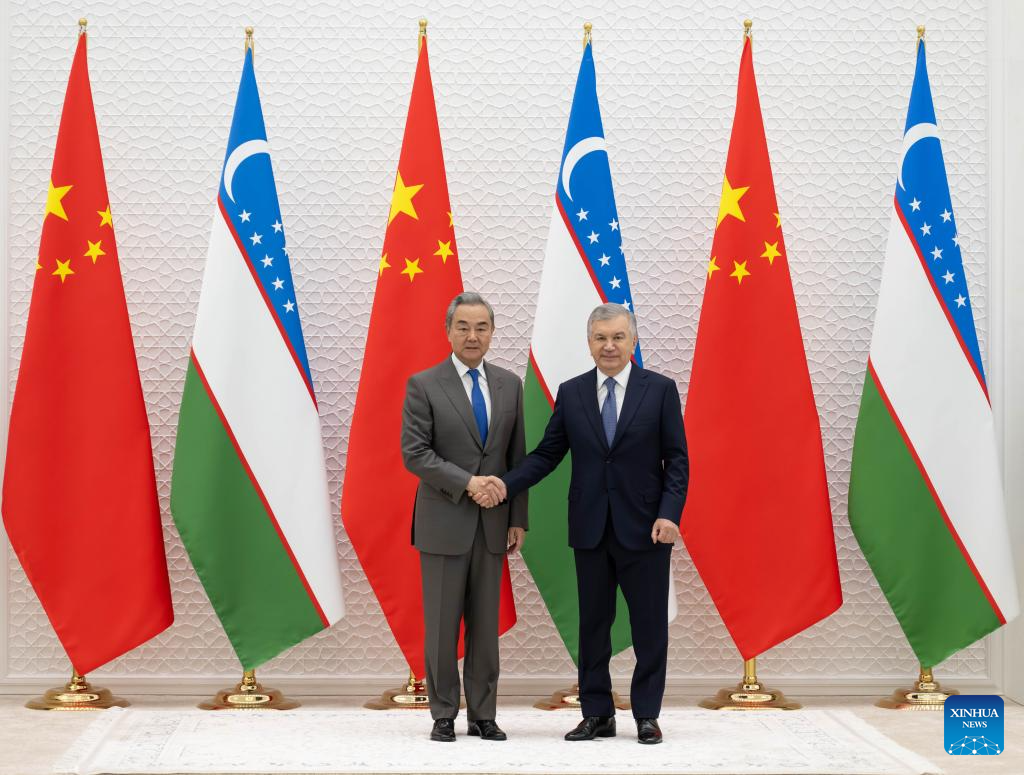 Wang disse que a China aprecia o apoio imediato do presidente uzbeque à Iniciativa de Governança Global proposta pelo presidente Xi e está disposta a trabalhar com o Uzbequistão para implementar as quatro principais iniciativas globais, manter o sistema internacional com as Nações Unidas como núcleo, fortalecer a coordenação no âmbito da Organização de Cooperação de Shanghai e sobre a questão afegã, otimizar e fortalecer o mecanismo China-Ásia Central, e construir conjuntamente uma comunidade China-Ásia Central mais próxima com um futuro compartilhado.