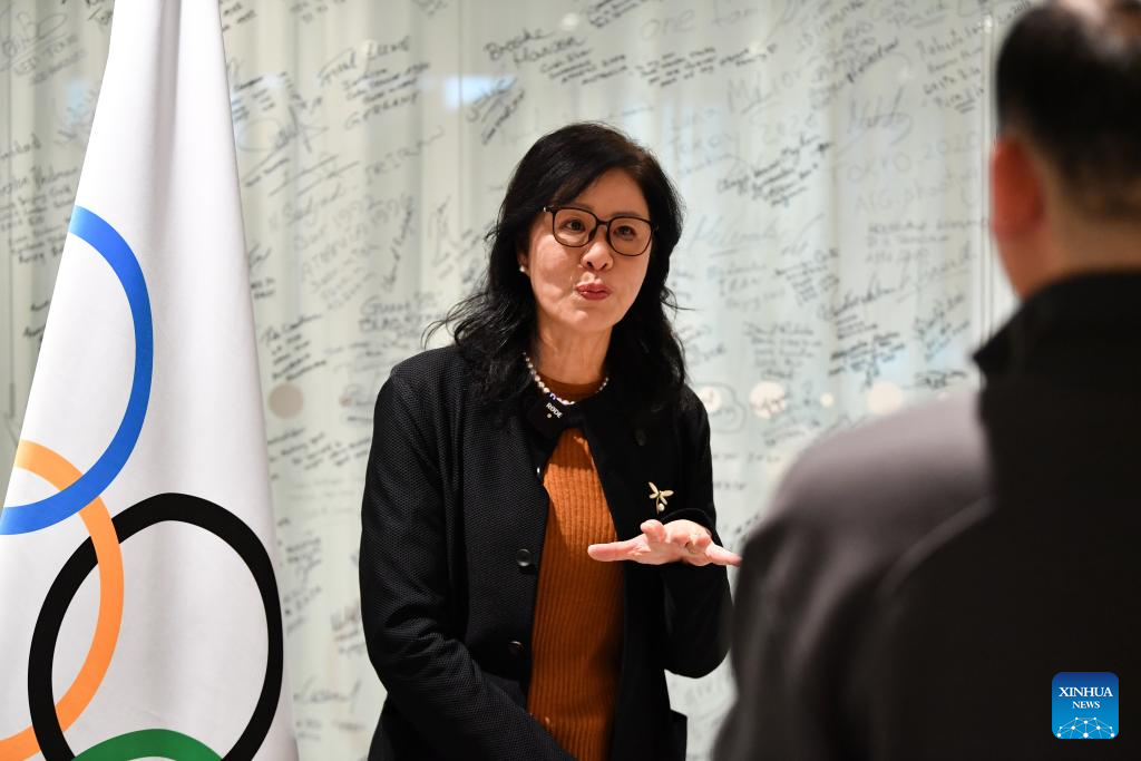 A treinadora chinesa de voleibol, Lang Ping, fala durante entrevista à Xinhua após ser homenageada com o Prêmio de Reconhecimento pela Carreira de Treinadores do COI, na Casa Olímpica em Lausanne, Suíça, em 24 de novembro de 2025. 24 de novembro de 2025. (Xinhua/Lian Yi)