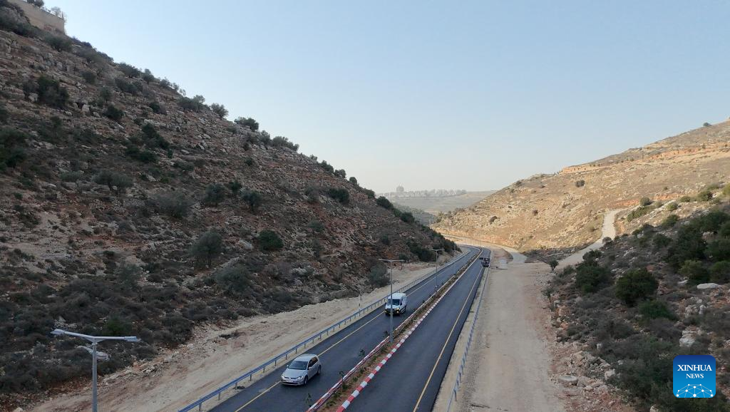 Foto mostra a extensão da Estrada de Beijing na cidade de Ramala, na Cisjordânia, em 24 de novembro de 2025. Autoridades palestinas e chinesas se reuniram na quarta-feira para celebrar a conclusão de dois projetos de infraestrutura financiados pela China na cidade de Ramala, na Cisjordânia. (Xinhua/Huang Zemin)