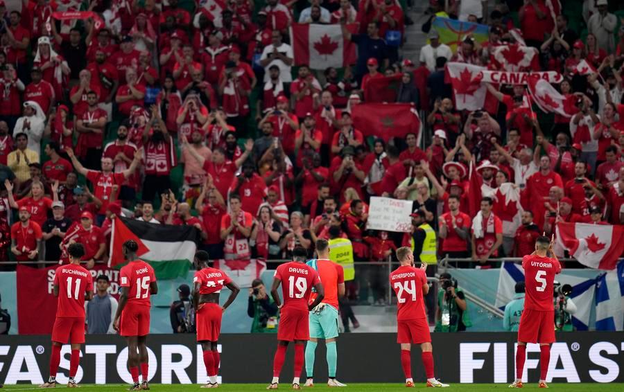 Jogadores do Canadá cumprimentam torcedores após partida do Grupo F contra o Marrocos na Copa do Mundo da FIFA 2022, no Estádio Al Thumama, em Doha, Catar, em 1º de dezembro de 2022. (Xinhua/Meng Dingbo)
