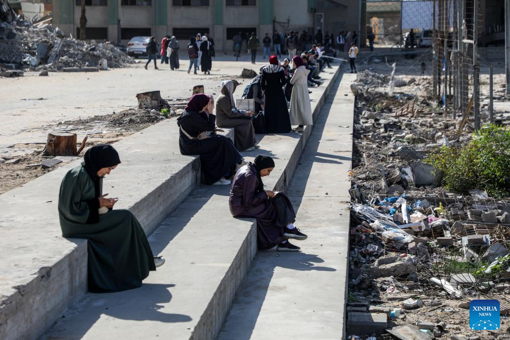 Estudantes palestinos caminham pelo campus da Universidade Islâmica, na Cidade de Gaza, em 7 de dezembro de 2025. (Foto por Rizek Abdeljawad/Xinhua)