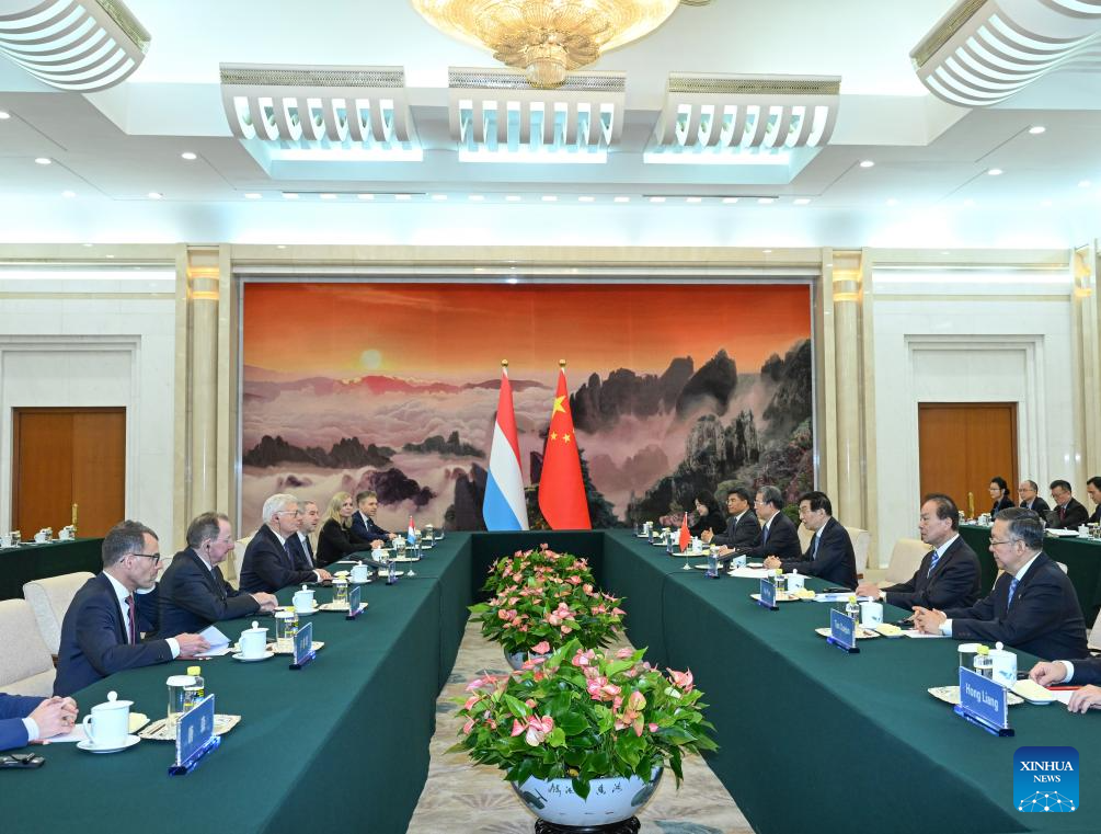Beijing, 12 dez (Xinhua) -- O mais alto conselheiro político da China, Wang Huning, reuniu-se com o presidente do Parlamento de Luxemburgo, Claude Wiseler, em Beijing na sexta-feira.