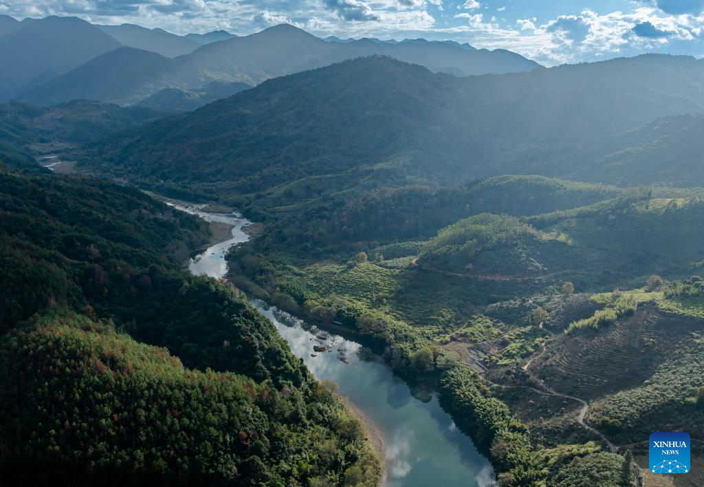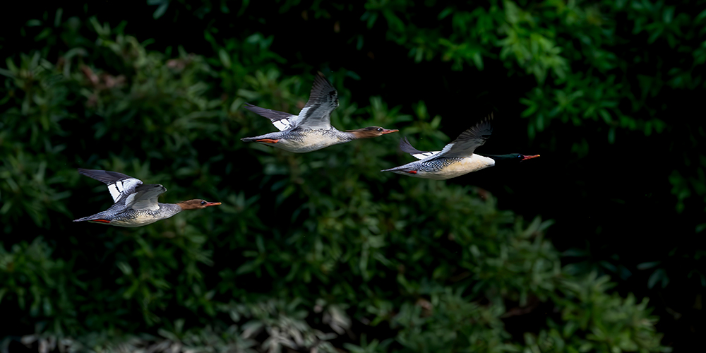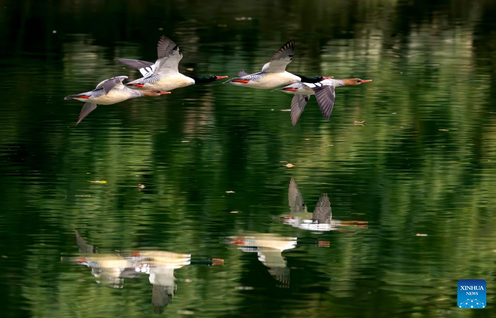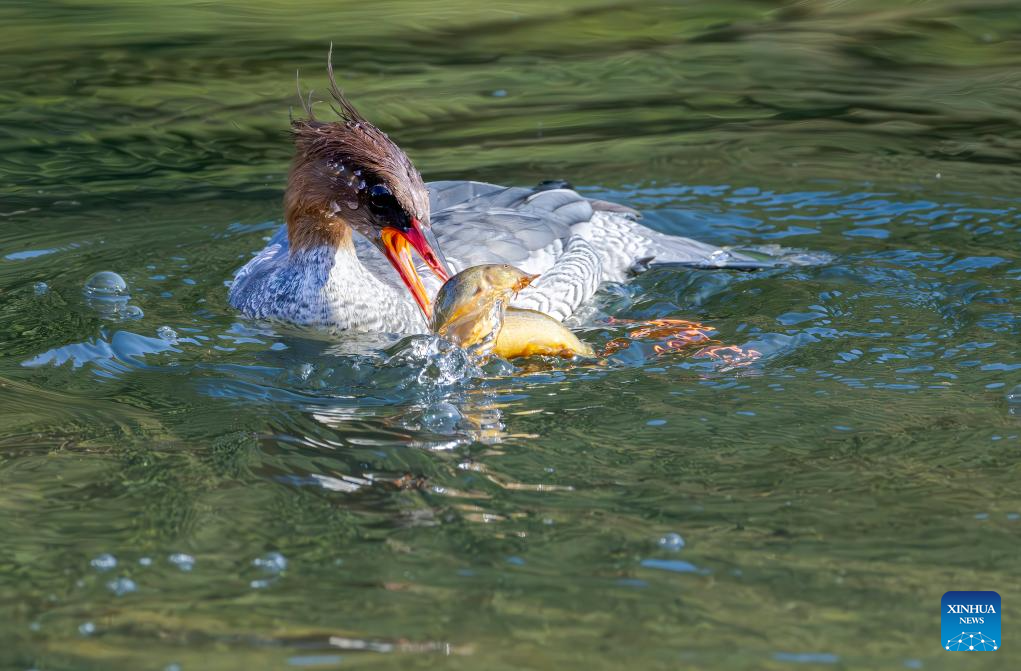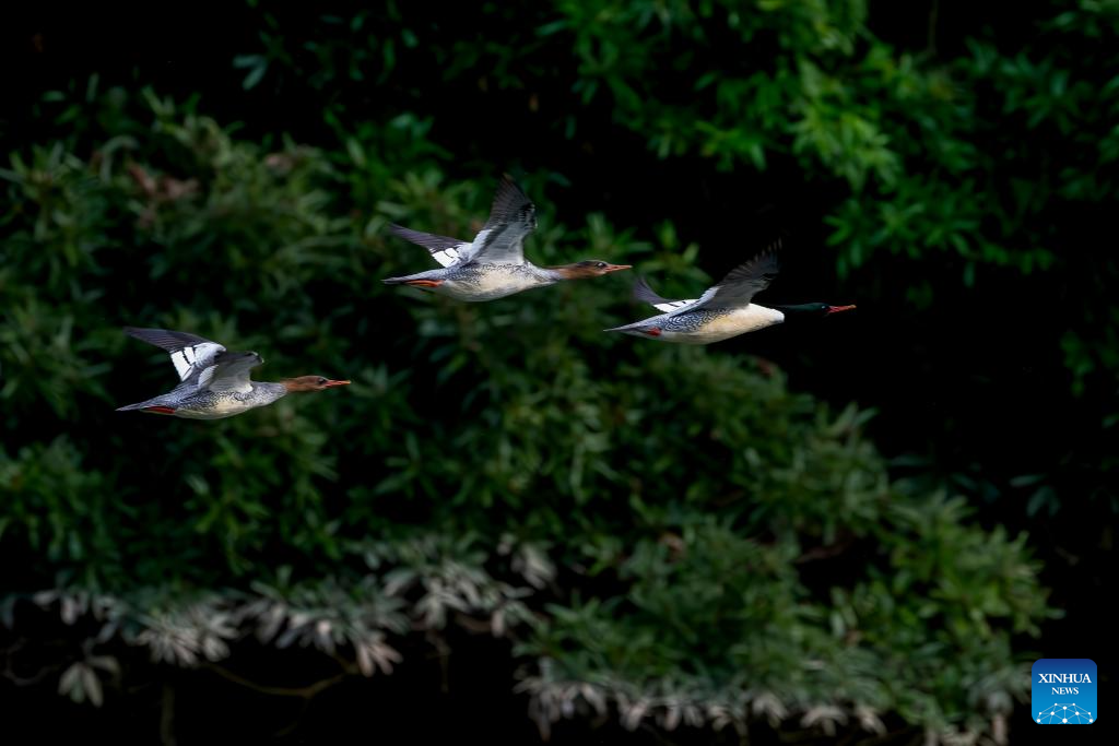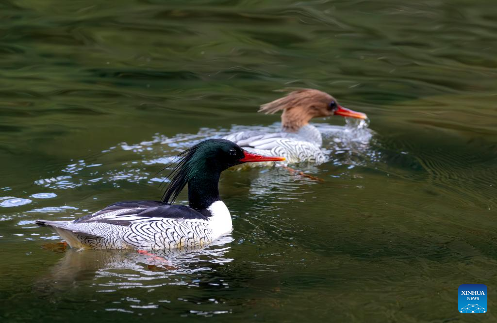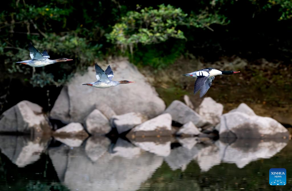 Rio Dazhang, no sudeste da China, recebe mergansos chineses em fuga do frio do inverno-Xinhua