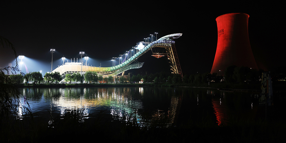 Paisagem noturna do Parque Shougang, sede da CIFTIS 2025 em Beijing