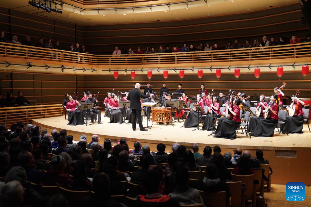 Filadélfia, Estados Unidos, 29 jan (Xinhua) -- Sob as luzes brilhantes do Centro Kimmel de Artes Cênicas, os sons das tradições musicais chinesas e ocidentais se misturaram harmoniosamente na quarta-feira, encantando o público americano.
