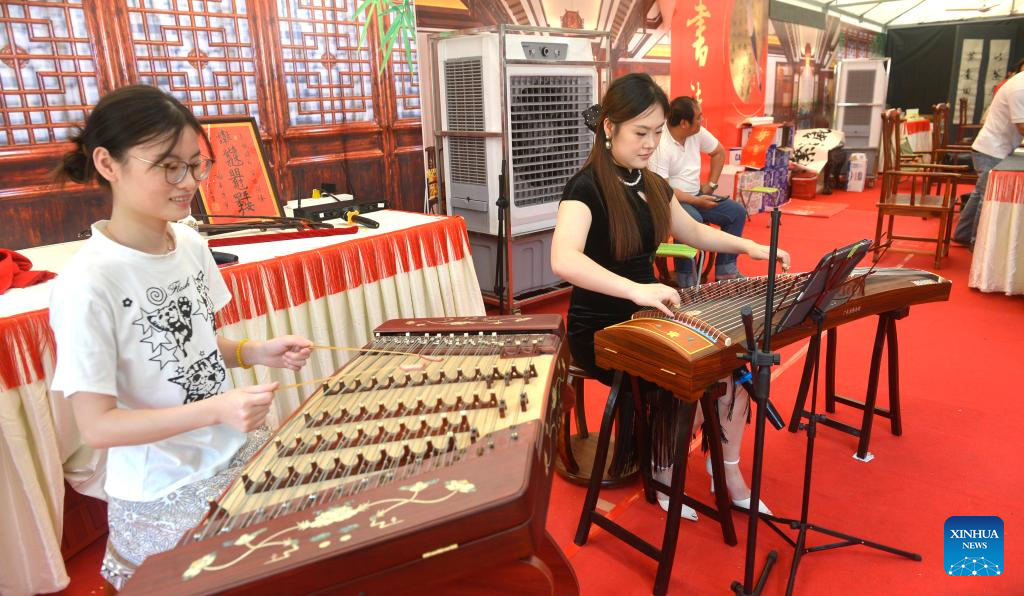 Artistas tocam instrumentos tradicionais chineses em uma exposição cultural sino-cambojana em Phnom Penh, Camboja, em 7 de fevereiro de 2026. Uma exposição cultural sino-cambojana está sendo realizada em Phnom Penh, capital do Camboja, para comemorar o Ano Novo Chinês, ou Festa da Primavera.