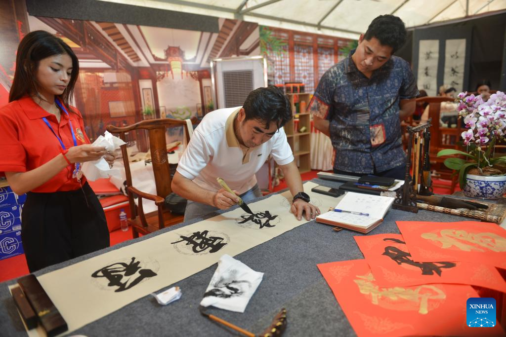 Com duração de sexta a domingo, o evento cultural de três dias foi projetado para proporcionar aos participantes a oportunidade de vivenciar a rica tapeçaria do Ano Novo Chinês. (Foto de Phearum/Xinhua)