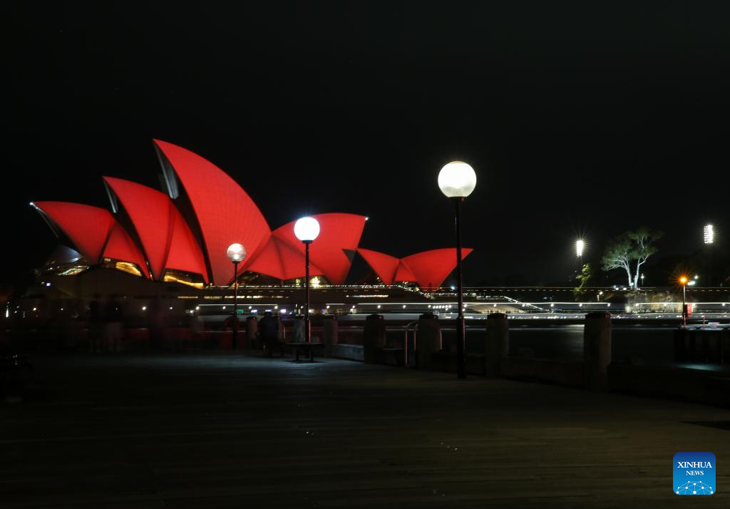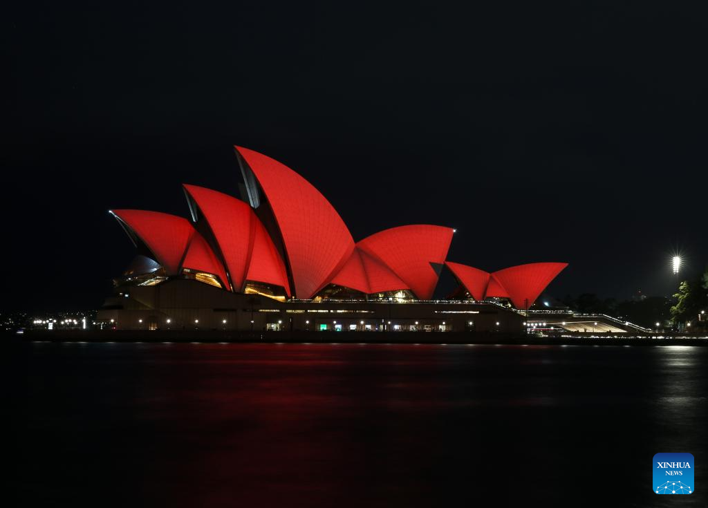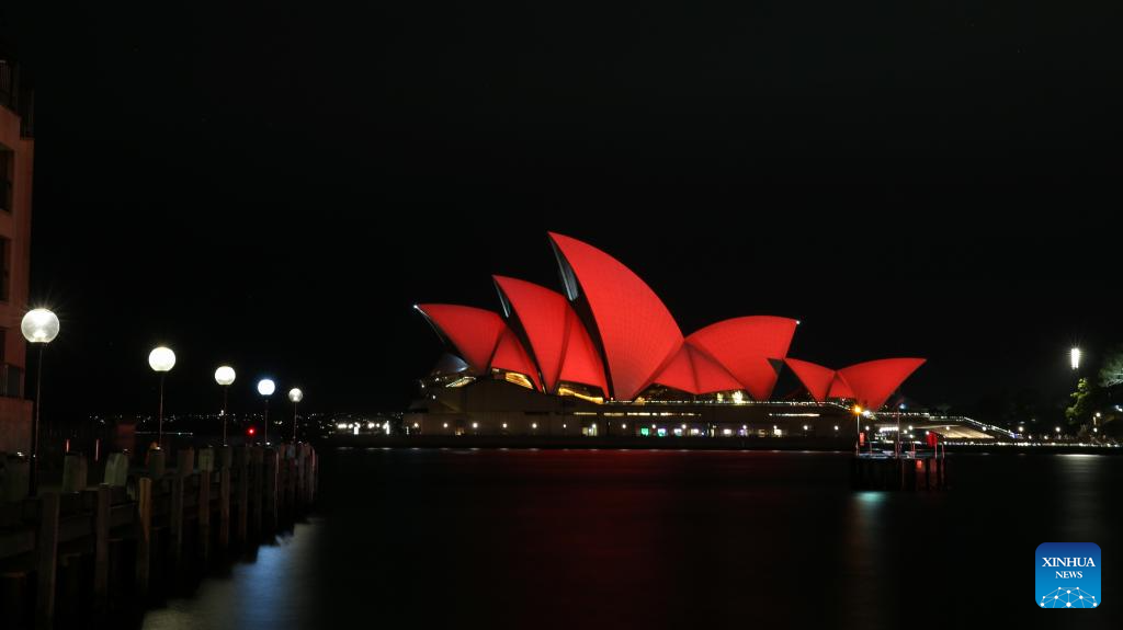 Ópera de Sydney se ilumina de vermelho para celebrar o próximo Ano Novo Chinês-Xinhua