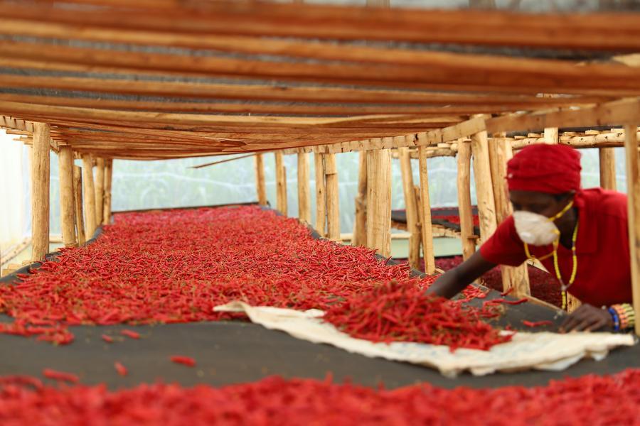 Funcionário separa pimentas no Distrito de Nyagatare, Ruanda, em 22 de maio de 2025. (Xinhua/Ji Li)