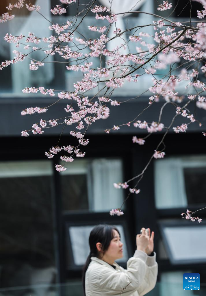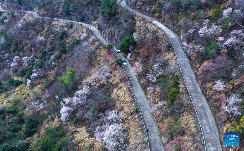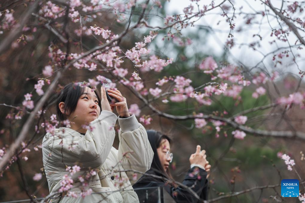 Cerejeiras silvestres em plena floração atraem turistas em Zhejiang, no leste da China-Xinhua
