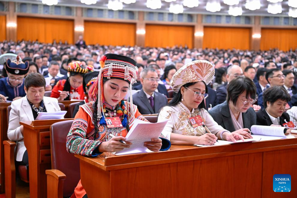 O presidente chinês, Xi Jinping, juntamente com outros líderes, participou da reunião de abertura da quarta sessão do 14º Comitê Nacional da CCPPC no Grande Palácio do Povo.
