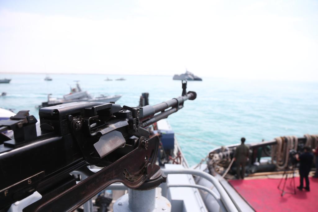 Embarcações da Guarda Revolucionária Islâmica do Irã são vistas durante uma cerimônia que marca o Dia Nacional do Golfo Pérsico, no Golfo Pérsico, perto de Bushehr, Irã, em 29 de abril de 2024. (Xinhua/Shadati)