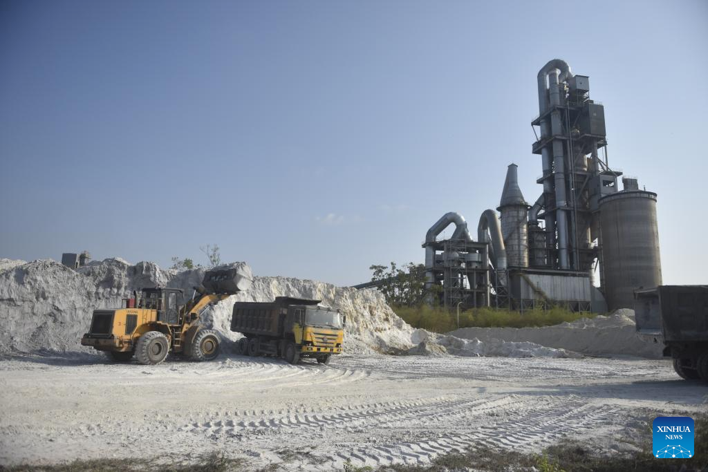 Kampot, Camboja, 2 abr (Xinhua) -- Para Phim Sophara, um cambojano de 43 anos que não tinha conhecimento prévio sobre fábricas de cimento, uma mudança drástica em sua vida aconteceu quando ele conseguiu um emprego e foi treinado por especialistas chineses no gerenciamento de matérias-primas para a fábrica de cimento.