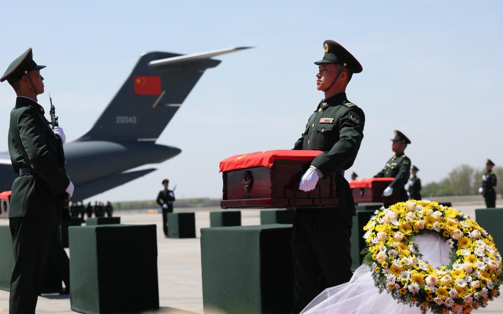 Uma grande aeronave de transporte Y-20B da Força Aérea chinesa carregando os restos mortais dos soldados caídos e 146 de seus pertences pessoais pousou no Aeroporto Internacional Taoxian, em Shenyang, capital da Província de Liaoning, no nordeste da China.