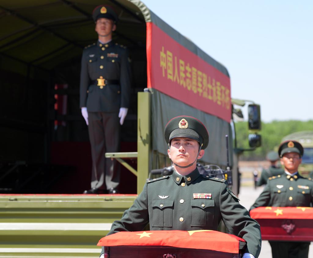 Shenyang, 22 abr (Xinhua) -- Os restos mortais de 12 mártires dos Voluntários do Povo Chinês (VPC) que perderam suas vidas durante a Guerra de Resistência contra a Agressão dos EUA e Ajuda à Coreia (1950-1953) foram repatriados à China vindos da República da Coreia (RDC) nesta quarta-feira.