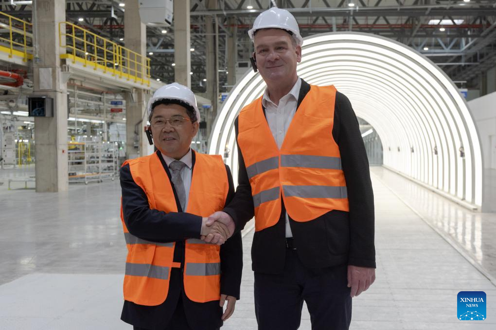 Botka e o embaixador chinês na Hungria, Gong Tao, visitaram na terça-feira a fábrica de veículos de passageiros de nova energia da BYD em Szeged para ver o andamento do projeto e trocar opiniões sobre o fortalecimento da cooperação sino-húngara e a promoção do desenvolvimento de indústrias verdes.