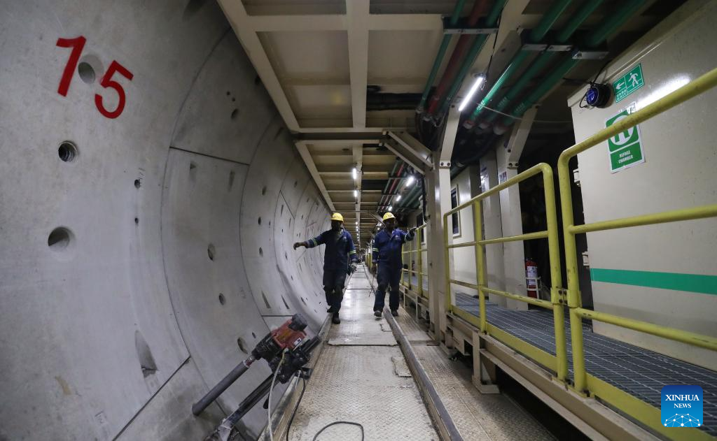 Maseru, 22 abr (Xinhua) -- No início do outono, as terras altas do Lesoto ainda fervilham sob um sol implacável do meio-dia. No distrito montanhoso de Mokhotlong, leste da capital Maseru, estradas serpenteiam por picos que se elevam a mais de 2.000 metros acima do nível do mar. A meio caminho de uma encosta, no interior de um túnel escavado na rocha sólida, uma tuneladora de 425 metros de comprimento trabalha arduamente, seu rugido constante ecoando pela montanha.