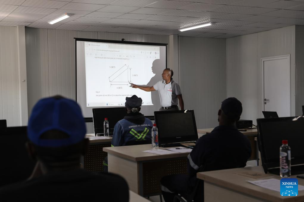 Trabalhadores participam de sessão de treinamento no centro de treinamento do projeto do Túnel de Transferência de Polihali, no distrito de Mokhotlong, leste do Lesoto, em 9 de março de 2026. (Xinhua/Chen Wei)