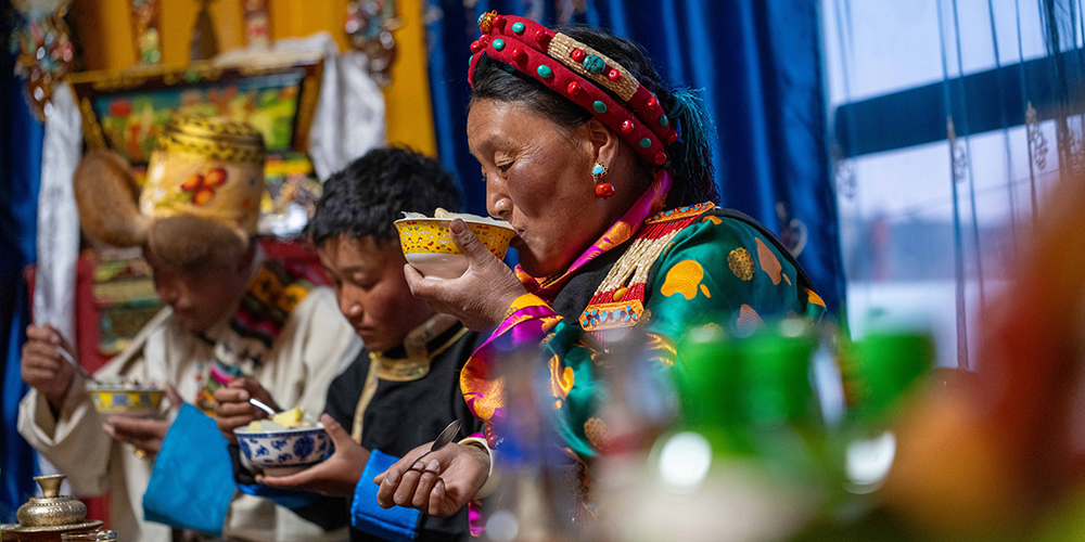 Moradores celebram primeira Festa da Primavera e Ano Novo Tibetano em novas casas após terremoto no Distrito de Dingri, em Xizang