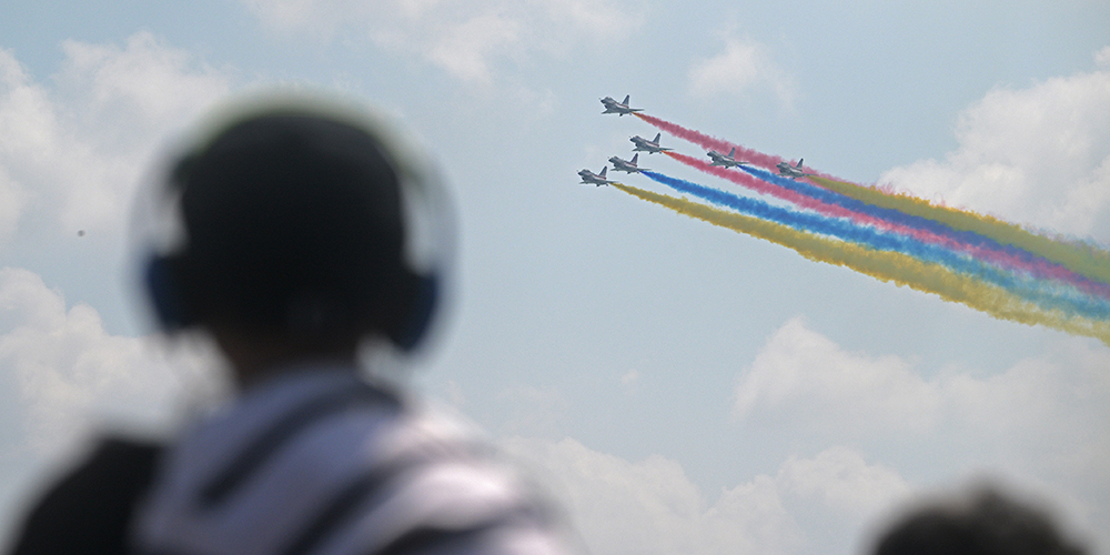 Apresentação da equipe de acrobacia aérea Bayi do Exército de Libertação Popular da China atrai grande público no Show Aéreo de Cingapura