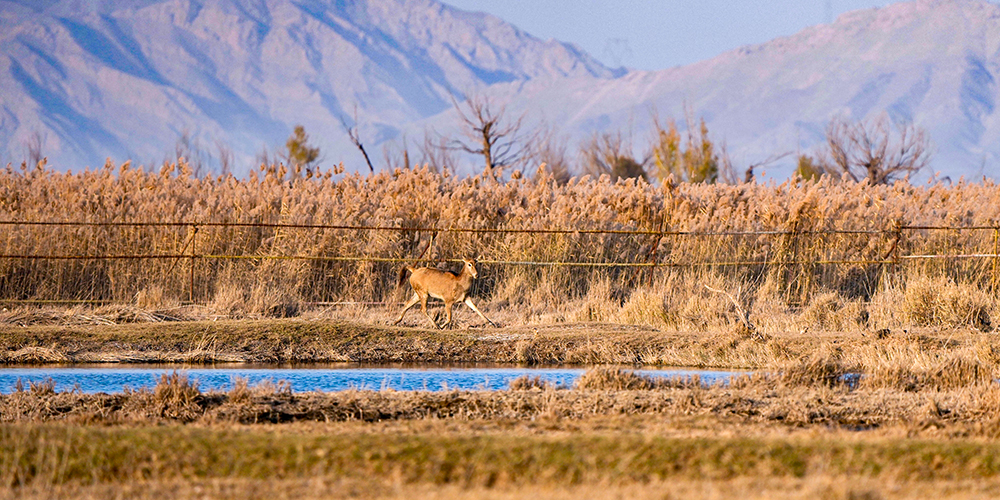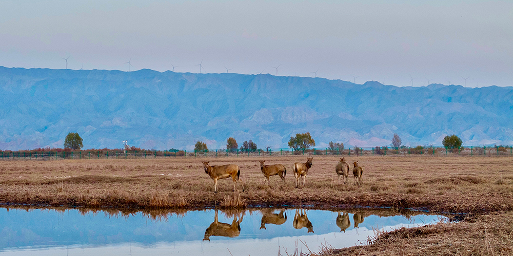 Fotos: cervos-milu na Reserva Natural do Pântano do Reservatório de Qingtongxia, em Ningxia